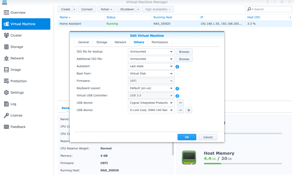 การเพิ่ม USB device ให้ VM ของ HA รู้จัก USB Wifi ที่ VM Manager ของ NAS