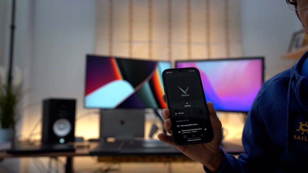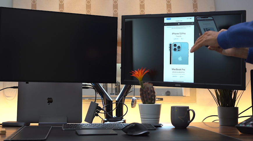 AirPlay to Mac ใช้งานได้ทั้งแบบไร้สายหรือต่อสายโดยใช้สาย USB-C โดยการเชื่อมต่อแบบมีสายจะส่งผ่านข้อมูลได้ไม่หน่วง
