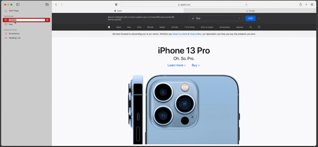 มีลูกศรชี้ลงใหม่ถัดจากบุ๊กมาร์กและอินเทอร์เฟซรายการเรื่องรออ่านซึ่งคุณสามารถเข้าถึงกลุ่มแท็บที่บันทึกได้จากอุกกรณ์ apple