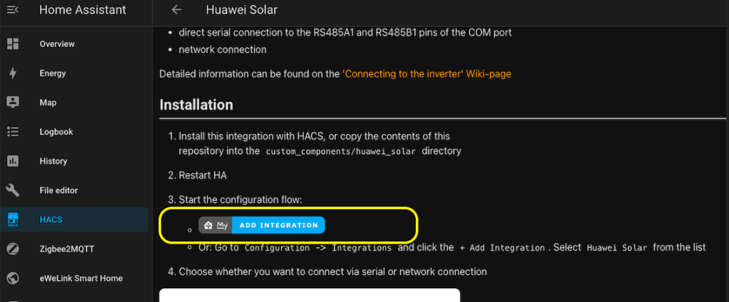ซึ่งการเชื่อมต่อนี้ ขึ้นอยู่ว่าเราลง HA ผ่าน platform อะไร ถ้าใครที่ใช้ Rasberry Pi หรือ IntelNuC ที่มี Port LAN และ Wifi จะสะดวกเลย คือให้ใช้ port LAN ต่อกับ router ที่บ้านและใช้ port LAN นี้ใช้งานกับ HA ส่วน Wifi จะใช้เชื่อมต่อ กับ AP ไม่สามารถใช้ Wifi เชื่อมต่อกับ router ที่บ้านและ Inverter พร้อมกันได้นะครับ