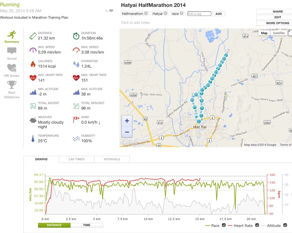 การวิ่งระยะฮาพมาราธอน ด้วยเวลา สองชั่วโมง รายการหาดใหญ่มาราธอน เมื่อ 25 พค 2557