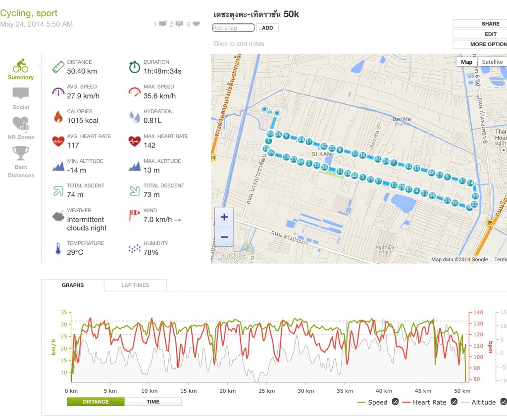 วิ่งด้วยความเร็วเฉลี่ย 5:30 นาทีต่อกม ปกติผมจะซ้อมด้วยเพซเฉลี่ย 6:00 นาทีต่อกม.